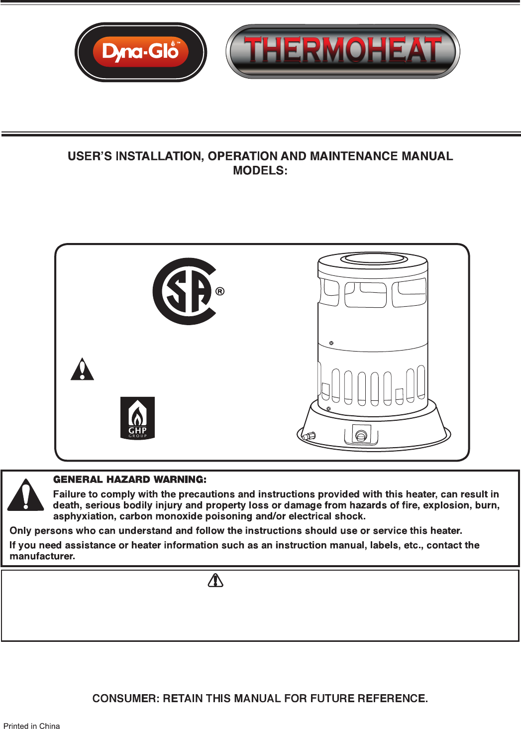 RMC-LPC80DG/DGD/DGP/DGP-01 (PROPANE, 80,000 BTU/hr)