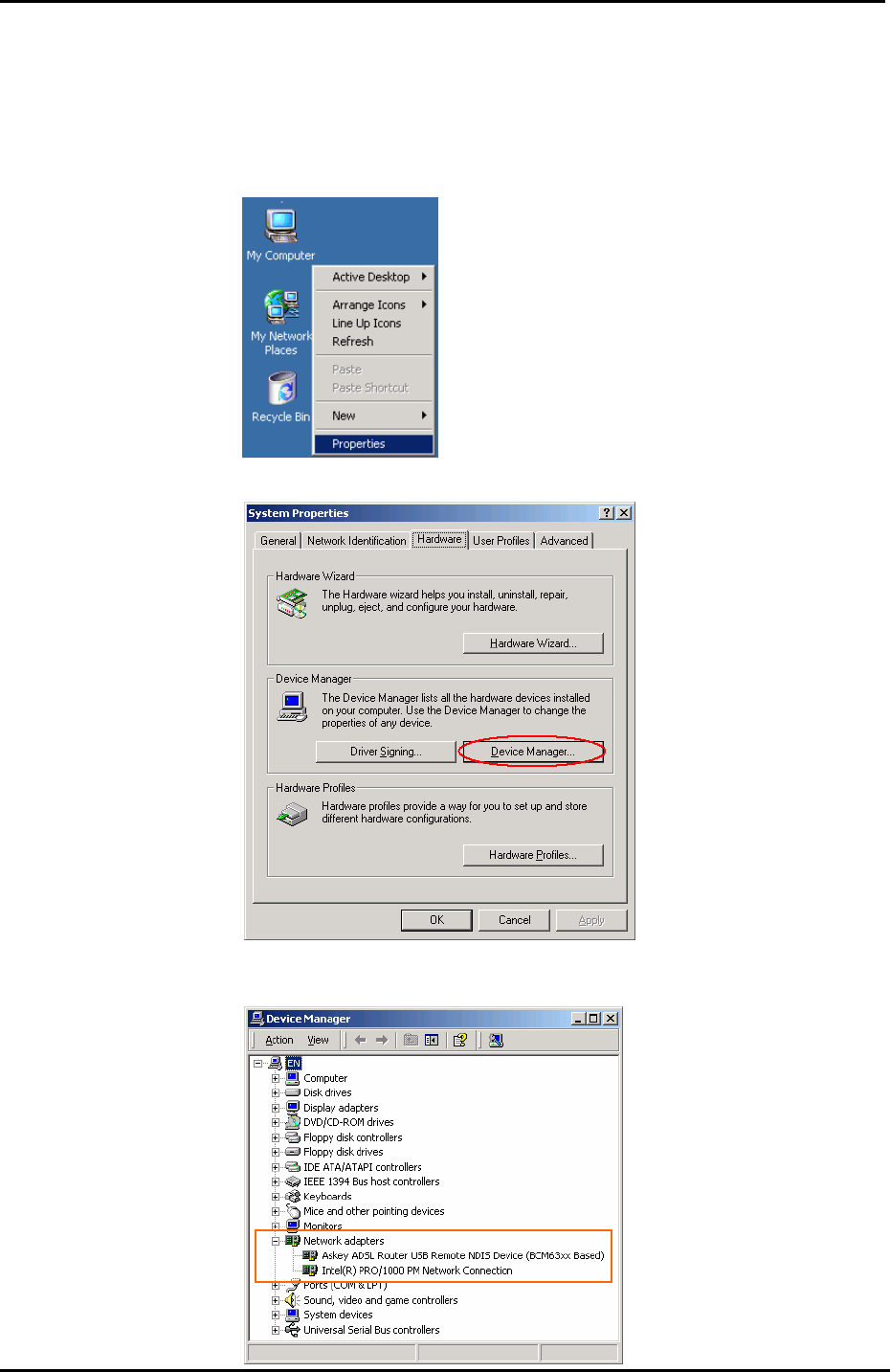3. Confirm that the Askey ADSL Router USB Remote NDIS Device is on the