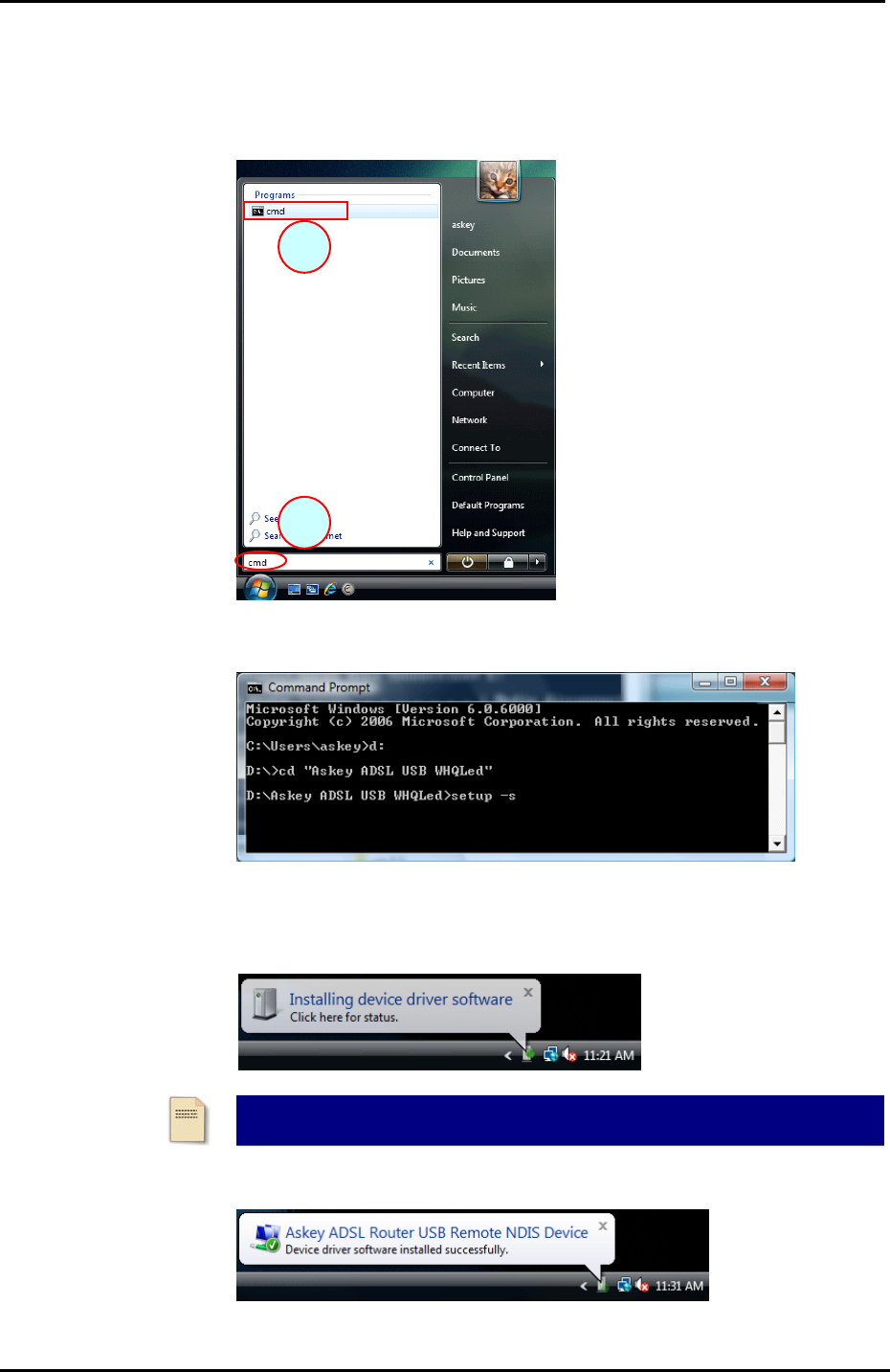 our example, the driver files are put under D:\Askey ADSL USB WHQLed.)