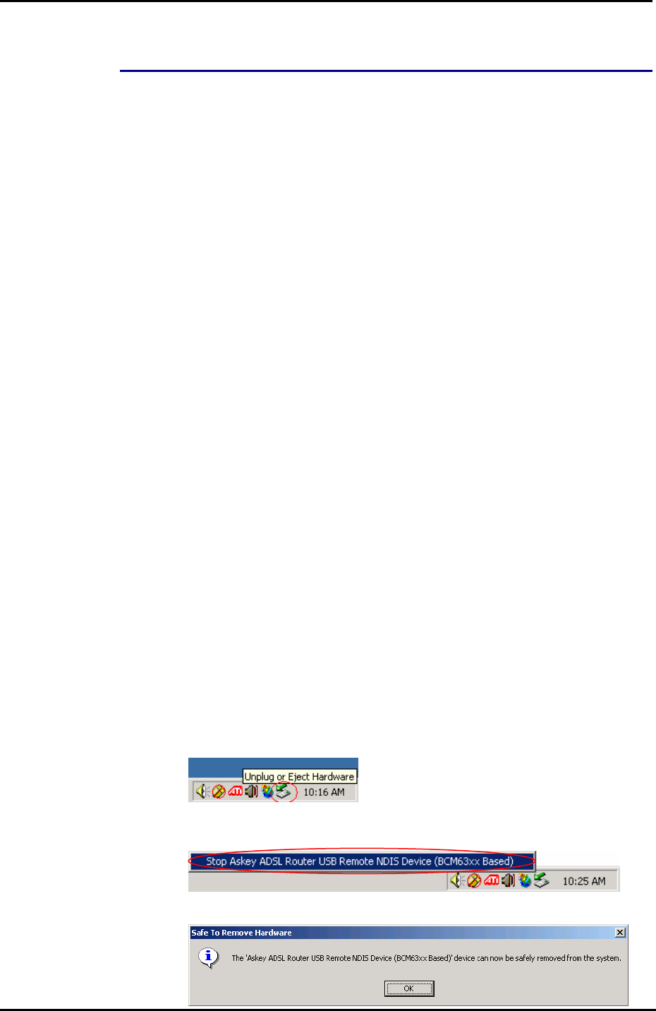 2. Click the dialog for Stop Askey ADSL Router USB Remote NDIS