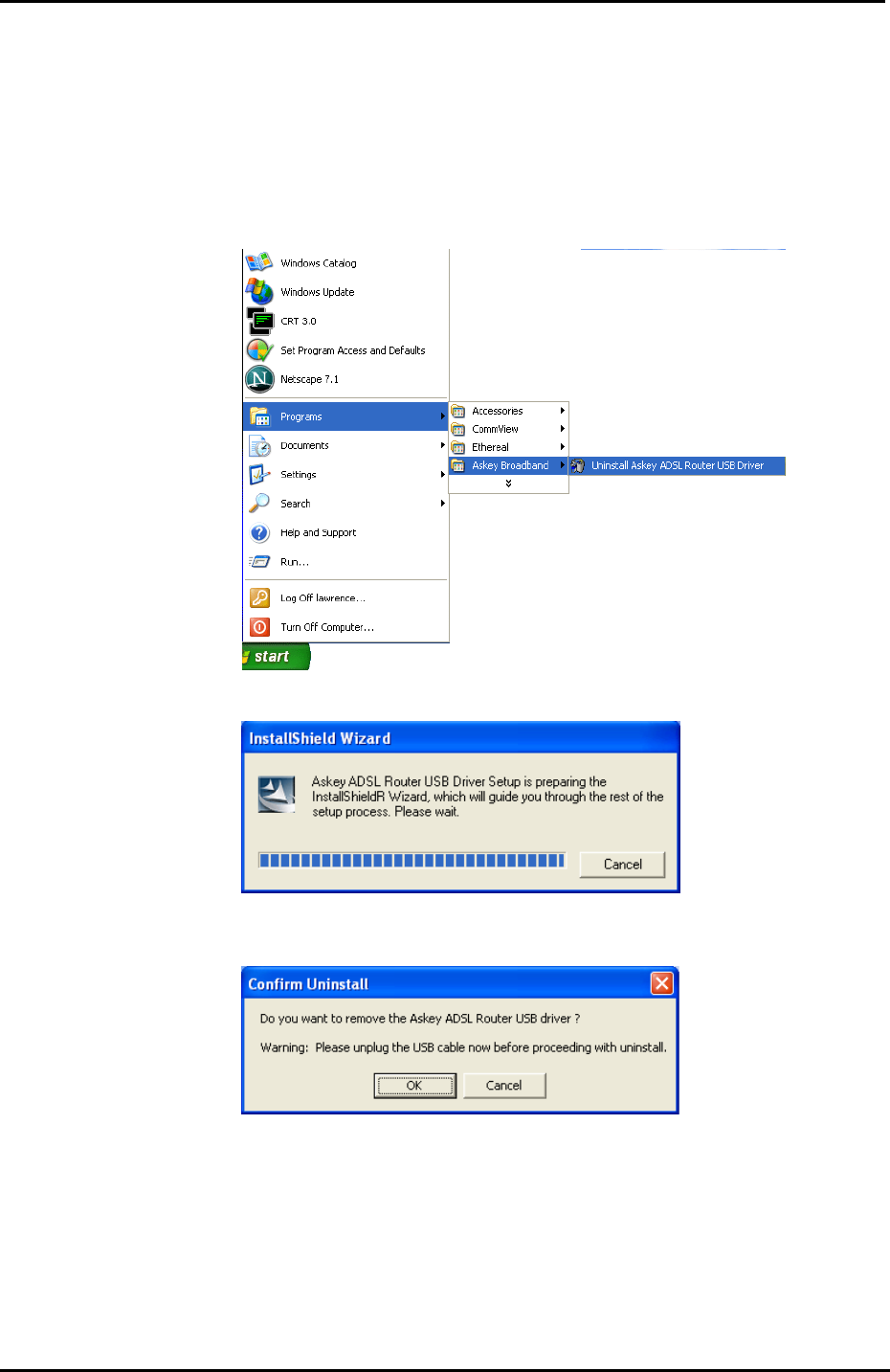o Choose Programs – Askey Broadband – Uninstall Askey ADSL Router