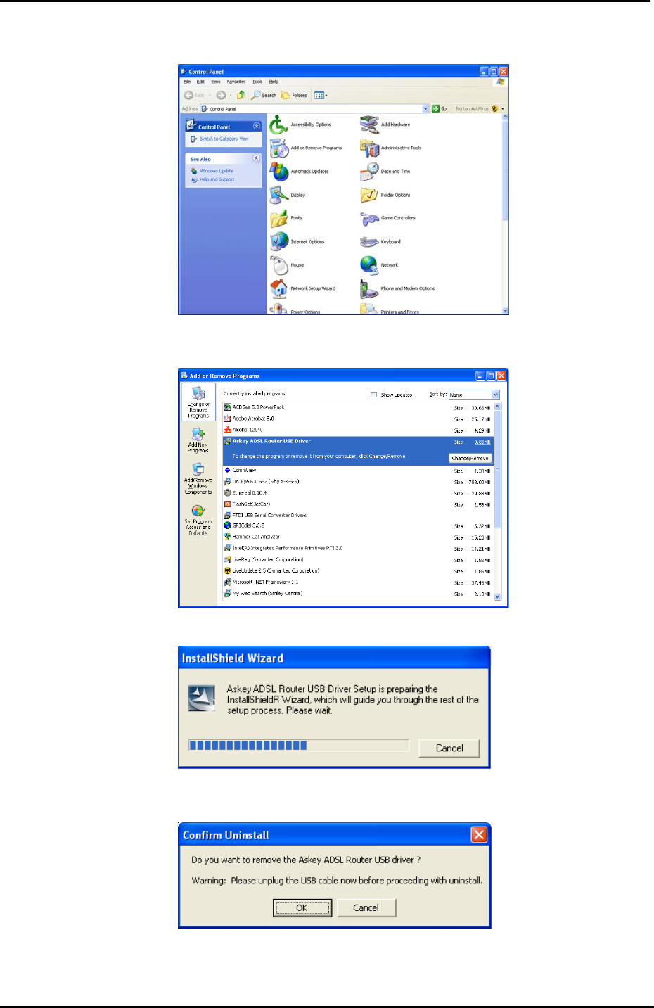 Please select Askey ADSL Router USB Driver and click Change/Remove.