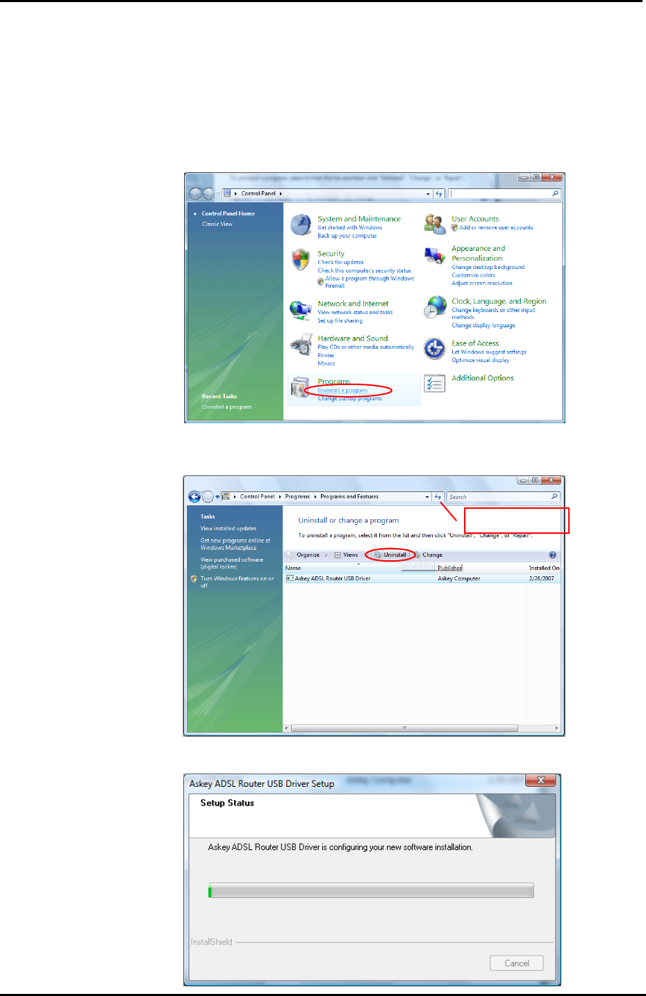 o Choose Start menu, and open Control Panel folder. Click Uninstall a