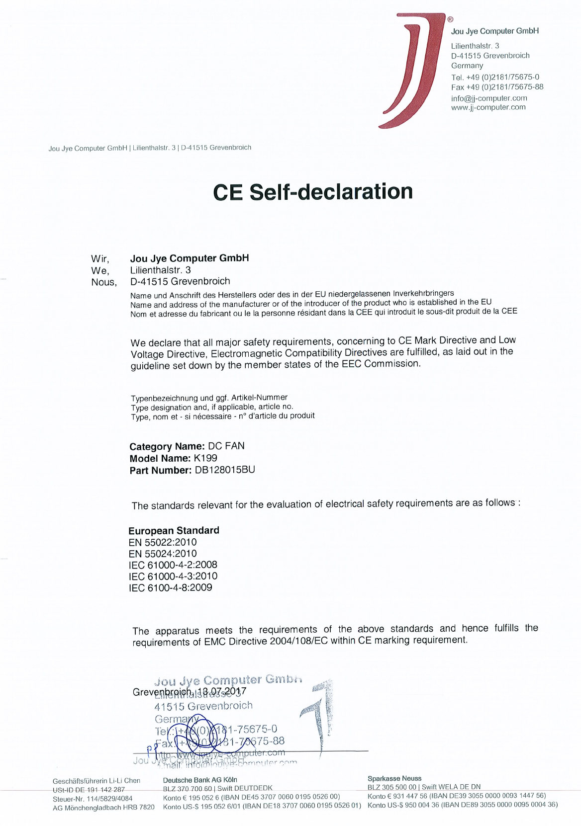 Declaration of conformity