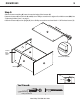 DX-WD1201 9 Step 3: Slide the bottom molding (K) onto the notched edge of the bottom (E). Fasten the bottom (E) to the ends (A and B). Use a Phillips screwdriver to tighten four hidden cams (M2). See “Tightening hidden cams:” on page 7. Fasten the bottom (E) to the upright (C). Use a Phillips screwdriver and two black 1-7/8" flat head screws (T).