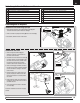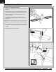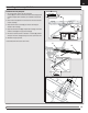 FR Installation du train avant, suite A 1. Retirez la trappe supérieure (A) pour accéder au bras de servo du train avant/de la gouverne de direction. 2. Fixez la barre de liaison du train avant (B) au bras de servo (C). Fixez la barre de liaison au troisième trou le plus éloigné comme illustré et réinstallez le fermoir. Le cas échéant, démontez-le dans l’ordre inverse. C B Installation du moteur 1. Installez le moteur avec le support en X (D) sur le fuselage à l’aide des 4 vis (E). 2.