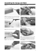 Assembling the Canopy and Hatch Step 1. Remove the flashing around the hatch with a sharp hobby knife. Step 2. Mix an adequate amount of 12-minute epoxy and apply to the recess in hatch (which is located at the rear of the hatch) and to one plywood square hold-down. Step 5. Mix an adequate amount of 12-minute epoxy and coat the underside on the plastic latch. Step 6. Place the plastic latch onto the fuselage and glue in place. Step 7. Using 12-minute epoxy, glue the hatch-latch recepticle in place.