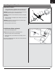 FR Assemblage du modèle, suite Adhésifs requis: B A Colle cyanoacrylate médium Installation de la gouverne de dérive 1. Insérez le Z de la tringlerie (A) dans le trou extérieur du guignol de commande (B) comme indiqué sur l’illustration. Conseil: Pivotez le bras du servo de dérive pour faire sortir la tringlerie par l’arrière du fuselage et faciliter l’installation de la gouverne. Replacez le servo au neutre avant d’effectuer le vol. 2.