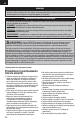 FR Guide de dépannage (Suite) Problème La DEL du récepteur clignote rapidement et l’avion ne répond pas à l’émetteur (après l’affectation) Les gouvernes ne bougent pas Les commandes sont inversées Le moteur perd de la puissance L’alimentation du moteur diminue et augmente rapidement, puis le moteur perd en puissance Contrôleur non armé après un atterrissage Le servo se verrouille ou se bloque en bout de course Cause possible Moins de 5 secondes se sont écoulées entre l’allumage de l’émetteur et la conne
