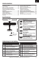 DE Leitfaden zur Problemlösung (Fortsetzung) Problem Mögliche Ursache Lösung LED auf dem Empfänger blinkt schnell, Flugzeug reagiert nicht auf den Sender (nach dem Binden) Sie haben weniger als 5 Sekunden nach dem Einschalten des Senders den Flugakku angeschlossen Lassen Sie den Sender eingeschaltet, trennen Sie den Flugakku und verbinden ihn wieder Ruder bewegen sich nicht Flugzeug ist an einen anderen Speicherplatz Wählen Sie das richtige Modell im Modellgebunden (nur Sender mit ModelMatch) speich