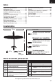 IT Indice Impostazione del trasmettitore .............................38 Installazione dell’ala ............................................38 Connessione trasmittente e ricevente ..................39 Installare la batteria di bordo e armare la ricevente ..........................................................40 Impostazione del baricentro (CG)..........................41 Test direzionale dei comandi ................................41 Centraggio dei comandi .......................................