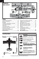 IT Controlli prima del volo 1. Caricare la batteria di bordo. 6. Impostare il centro di gravità. 2. Montare la batteria sul modello (dopo averla caricata). 7. Eseguire il controllo della portata del sistema radio. 3. Ricevitore di collegamento al trasmettitore. 8. Trovare un’area sicura e aperta. 4. Accertarsi che i giunti si muovano liberamente. 9. Pianificare il volo in base alle condizioni del campo. 5. Eseguire il test della direzione dei comandi con il trasmettitore.