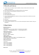 UH683 Series Modem User Manual SMS: Point-to-point MO and MT SMS cell broadcast Text and PDU mode CSD up to 14.4 kbps, USSD, Non transparent mode, V.110 Fax: Group 3, Class 1, 2 Audio: Half Rate (HR) Full Rate (FR) Enhanced Full Rate (EFR) Interface Plug in power supply Mini-SIM card reader Standard RS-232/485/TTL Standard serial Port (DB-9) SIM interface: 3V And1.8V Dimension External: Dimensions: 75*50*16mm Weight: 200g Embedded: Dimensions: 72*46*14.