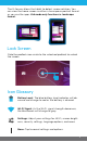 The G-Sensor allows the tablet to detect screen rotation. You can view the home screen in either a lanscape or portrait format as you use the apps. Kid mode only functions in landscape format. Lock Screen Slide the padlock icon circle to the unlocked padlock to unlock the screen. Icon Glossary Battery Level: The blue battery level indicator will decrease and change to red as the battery is drained. Wi-Fi Signal: As the Wi-Fi signal strength decreases, the blue bands will change to grey.