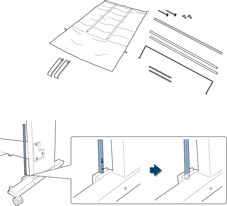 The paper basket is a cloth sheet that attaches to the printer stand and
