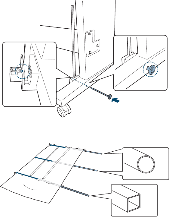 4. Insert the round and square poles into the basket cloth as shown.