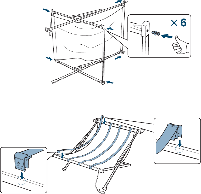 7. Insert six pins into the plastic connectors to secure the rods.