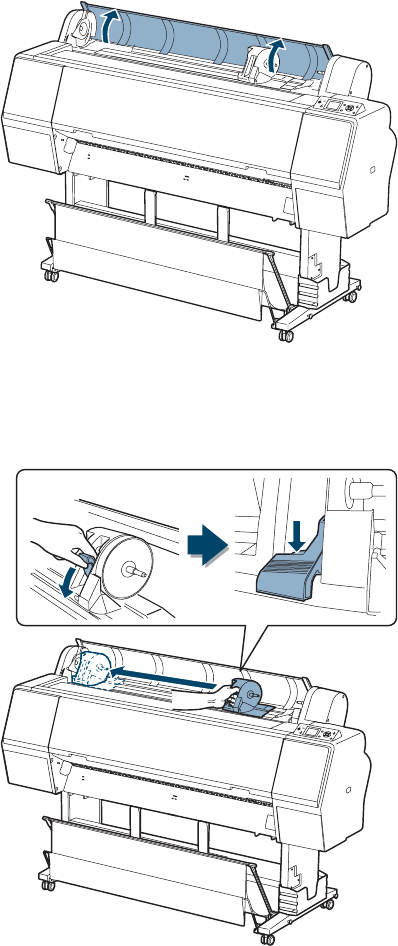 2. Push the lock lever down firmly, then move the roll paper holder to the