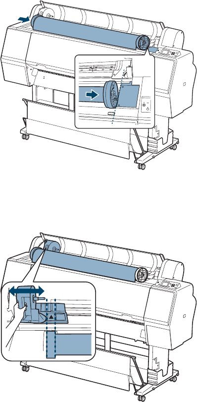 8. Slide the roll paper holder to align the u arrow with the roll paper