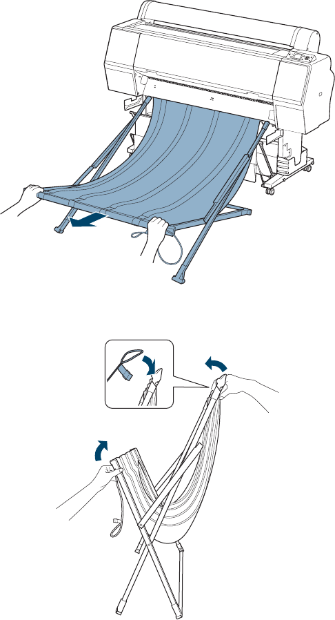 2. Fold up the basket as shown. Use the storage cord to keep it closed.