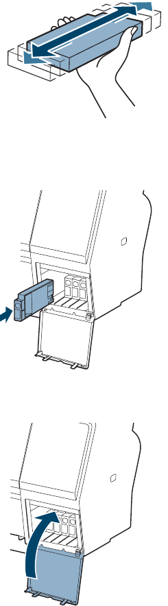 7. Hold the cartridge with the arrow pointing toward the printer. Then