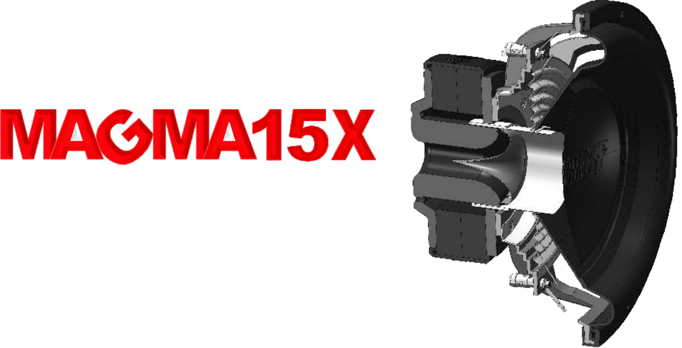 Specifications One-way, Linear Excursion: (Xmax) Efficiency (1W/1m): Effective Piston Area (Sd): DC Resistance (Re): Nominal Impedance: Power Handling (continuous): Mounting Depth: Mounting Hole Diameter: Driver Displacement: MAGMA15X 20.209 Hz 0.3219 4.7850 .3017 7.4210 ft3 210.14 liters 0.75 in 19.05 mm 89.1487 dB SPL 137.95 in2 0.089 m2 8? Dual 4? 1000W 8 in 203 mm 14 in 357 mm 0.2 ft3 5.