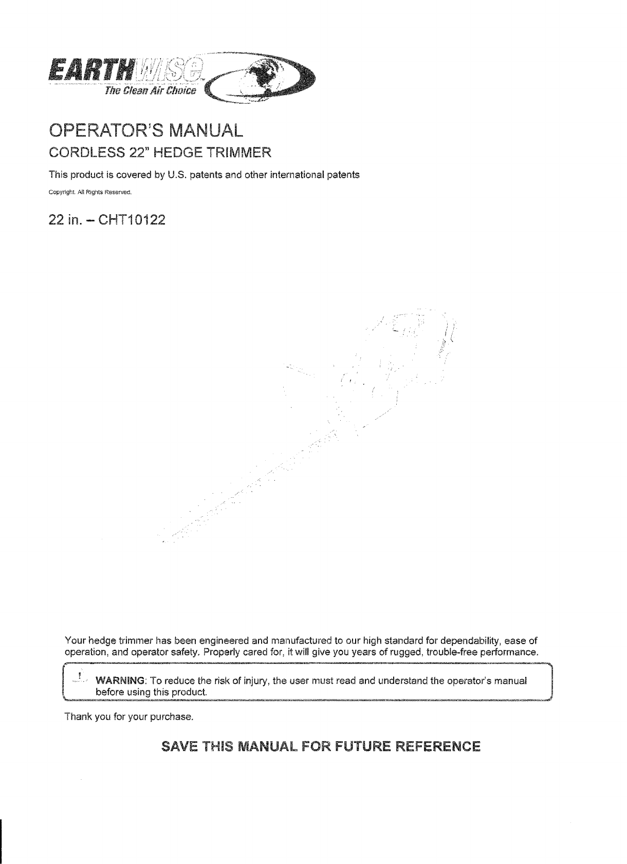 Your hedge trimmer has been engineered and manufactured to our high standard for dependability, ease