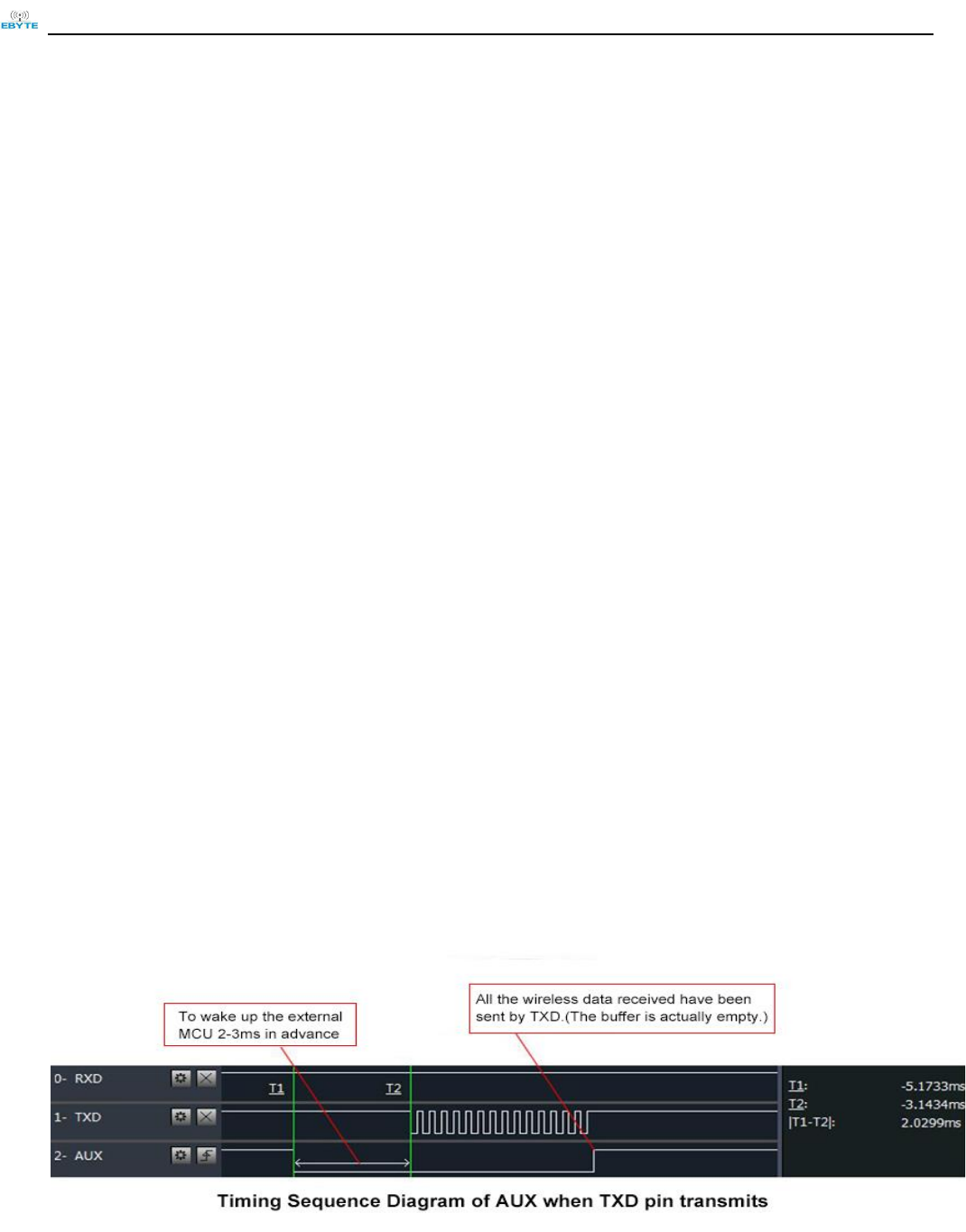 the AUX rising edge as the start of module’s normal work.