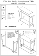 2 Tier Solid Bamboo Frame Console Table Assembly Instructions @ Table Pieces 13 Tabletop pe 2 ¥ Frame {2 pecs) 3 3 Cross-support & 4% shelf Easy 2 step assembly attached piece 3 {Cross-support) to both piece 2 (frame) letterhead pee 1 Contactable) and place 4 thief} to frames using remain part A SOs usb parch X snd &, tighten with included gaffe wren