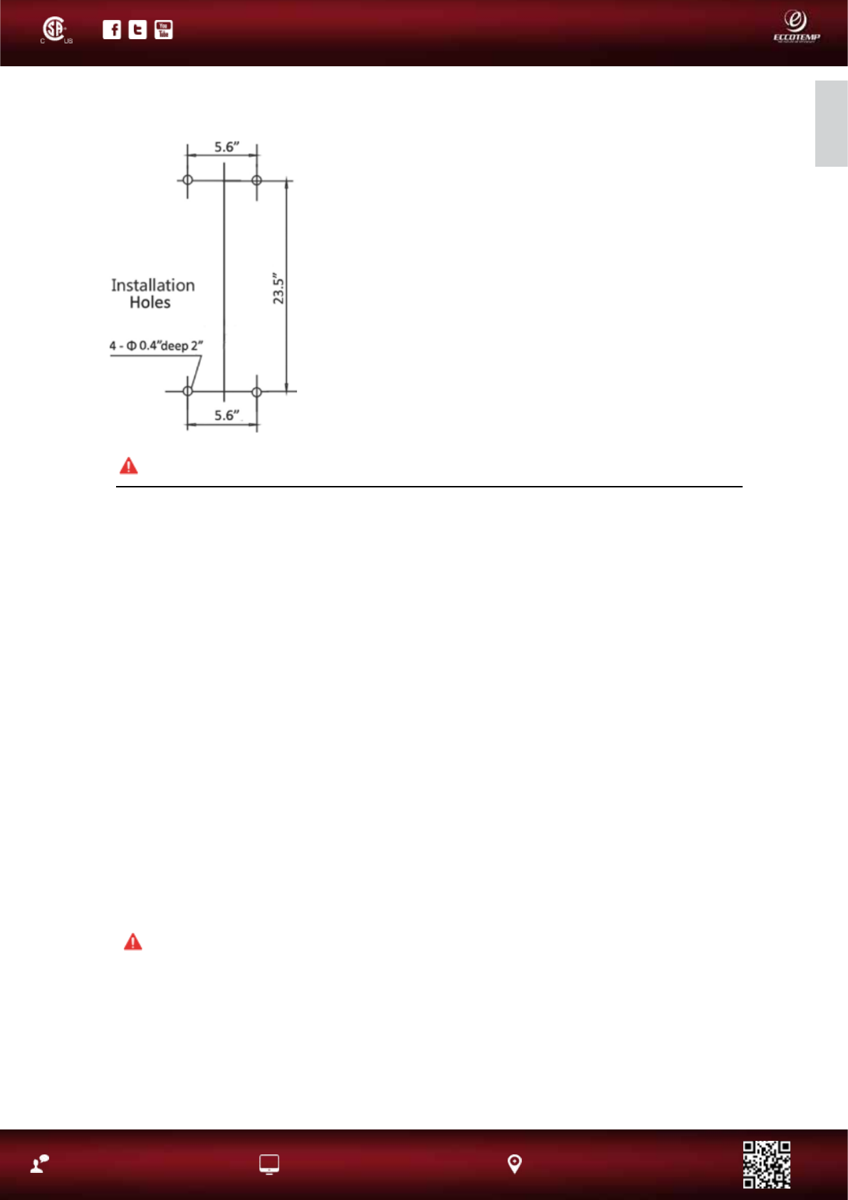 CAUTION: Reinforcement of the wall is required in case the wall is not strong enough to hold the water heater.