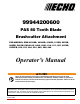 x7722271404 / x772000164 99944200600 PAS 80 Tooth Blade Brushcutter Attachment FOR MODELS: SRM-2100SB, 2400SB, 210SB, 211SB, 225SB, 260SB, 261SB, PAS-2100, 2400, 2601, 210, 211, 225, 225VP, 225VPB, 230, 231, 260, 261, 265, 266, 280 Operator’s Manual Users of this equipment risk injury to themselves and others if the unit is used improperly and/or safety precautions are not followed. ECHO provides an operator’s manual. It must be read and understood for proper and safe operation.