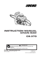 INSTRUCTION MANUAL CHAIN SAW CS-370 WARNING Read the instructions carefully and follow the rules for safe operation. Failure to do so could result in serious injury.