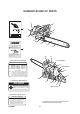 NOMENCLATURE OF PARTS 1. Instruction manual - Included with unit. Read before operation and keep for future reference to learn proper, safe operating techniques. 11. Chain catcher - A projection designed to reduce the risk of the operator’s right hand from being hit by a chain which has broken or derailed from the guide bar during cutting. 2. Safety manual - Describe operating and safety instructions for this chain saw. 12. Guide bar - The part that supports and guides the saw chain. 3.