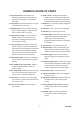 SYMBOL FORM Symbol form/shape Symbol description/application Symbol form/shape Symbol description/application WARNING!! Read and follow all safety precaution in the instruction manual Chain oil fill Wear eyes, ears and head protection Chain oiler adjustment Chain brake operation Decompression device Emergency stop Carburetor adjustment - Low speed mixture Choke control “Cold Start” position (choke closed) Carburetor adjustment - High speed mixture Oil and gasoline mixture Carburetor adjustment -