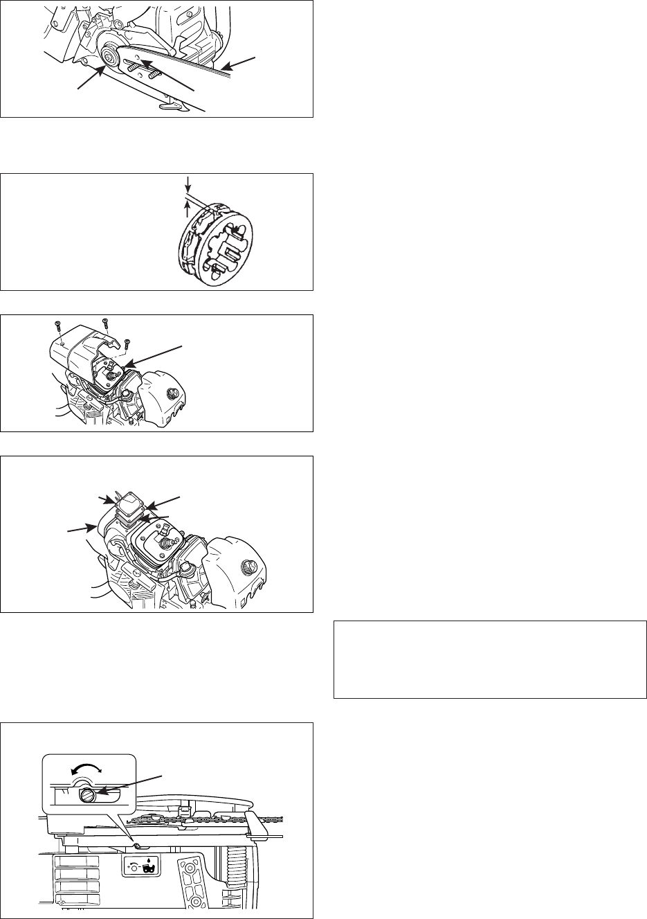 • Check sprocket and the clutch and clean the bar