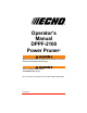 PRODUCT REGISTRATION DPPF-2100 PRODUCT REGISTRATION Thank you for choosing ECHO Power Equipment Please go to http://www.echo-usa.com/Warranty/Register-Your-ECHO to register your new product on-line. It's FAST and EASY! NOTE: your information will never be sold or misused by ECHO, Incorporated. Registering your purchase enables us to contact you in the unlikely event of a service update or product recall, and verifies your ownership for warranty consideration.