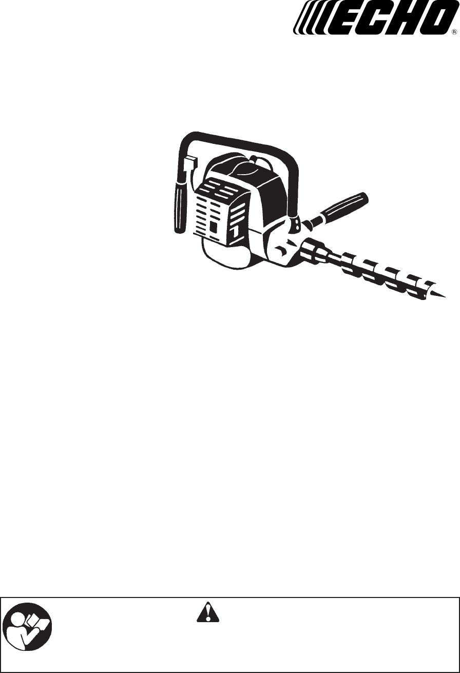 INTRODUCTION ECHO Engine Drill EDR-210 is a lightweight, high performance, two-stroke engined unit designed for drilling. WARNING IMPROPER USE OR CARE OF THIS UNIT, OR FAILURE TO WEAR PROPER PROTECTION CAN RESULT IN SERIOUS INJURY. READ AND UNDERSTAND THE RULES FOR SAFE OPERATION AND ALL INSTRUCTIONS IN THIS MANUAL. This Manual provides the information necessary for operation and maintenance.