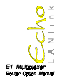 Echo LANlink Router Option User Manual 1 INTRODUCTION This user manual describes installation, configuration and operation of the Echo LANlink Multiplexer Router option, and must be referred to in conjunction with the Echo LANlink Multiplexer User Manual. The Echo LANlink is an E1 time division multiplexer (TDM) operating at 2Mbps compliant with both EUROPEAN and UK G.703 communications standards.