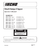 HEDGE CLIPPER OPERATOR'S MANUAL 11 DESCRIPTION The ECHO product you have purchased has been factory pre-assembled for your convenience. Due to packaging restrictions, some assembly of Models SHC-2100, SHC-2400 and HCA-2400 is required. After opening the carton, check for damage. Immediately notify your retailer or ECHO Dealer of damaged or missing parts. Use the contents list to check for missing parts.