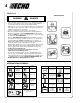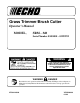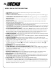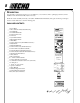 SERVICING INFORMATION PARTS Genuine ECHO Parts and ECHO REPOWER™ Parts and Assemblies for your ECHO products are available only from an Authorized ECHO Dealer. When you do need to buy parts always have the Model Number and Serial Number of the unit with you. You can find these numbers on the engine housing. For future reference, write them in the space provided below. Model No. ________________ S.N.