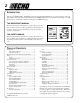 INTRODUCTION Welcome to the ECHO family. This ECHO product was designed and manufactured to provide long life and on-the-job dependability. Read and understand this manual and the SAFETY MANUAL you found in the same package. You will find both easy to use and full of helpful operating tips and SAFETY messages. THE OPERATOR'S MANUAL Read and understand this manual before operation. Keep it in a safe place for future reference.