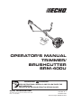 INTRODUCTION The ECHO Trimmer/Brushcutter, model SRM-400U is lightweight, high performance gasoline powered rotary trimmer which is designed for brushcutting, weed control and grass trimming in areas which are difficult to control by any other means. The trimmer is equipped with a safety shoulder harness, and the excellent balance characteristics plus the available power, ensures comfortable operation.