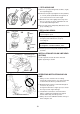 STARTING WARM ENGINE Decompression device • Press the decompression device. • When engine is warm, start it by pulling starter handle with switch positioned at START/RUN. (Keep choke lever in RUN (open) position) • If engine does not start in a few tries, follow same procedures as starting a cold. Starter handle HOLD THE UNIT FIRMLY. STOPPING ENGINE • Release throttle trigger and allow to run at an idle speed. • Slide ignition switch to “STOP” position.