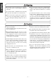 English • Do not place the vinyl storage bag over a person's head. It may cause a serious accident or death by suffocation. • Do not operate the main unit in a malfunctioning condition, for instance, when the audio does not play. Doing so may result in an accident, fire, or electrical shock. • Do not disassemble or rebuild this main unit. Doing so may cause an accident, fire, or electrical shock.