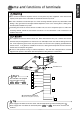 English Name and functions of ter minals • Never cut the insulation on the power wire or use it to power any other equipment. If the rated current capacity of the power wire is exceeded, fire and electric shocks may result. • The wires should be secured with tape or a similar securing method to prevent any obstructions while driving. If they get wound or entangled around components such as the steering wheel, shifting lever, or brake pedal, accidents may result.