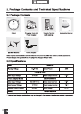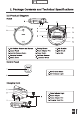 2. Package Contents and Technical Specifications Remote Control Dust Bin 2 o 1. LGD Soreness 2. Re tum to Charger Mode Button 3. AUTO Mode Bunion 4. Direction Control Buttons 5. START/PAUSE Button &, Time Scheduling Button 7. Set Gum rent Tums Bunion 8. Spot Cleaning Mode Burton 9. Single Room Mods Button 10 Network Setup Burton 11. Edgar Cleaning Mode Button 12 infrared Emitter 1. Filter Net 2. Sponge Sifter 3. High Efficiency Filter 4. Dust Bin Over 5. Dust Bin 6.