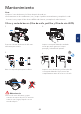 Solución de problemas El aparato no enciende No tiene energía Cargue la batería Protección automática ante el sobrecalentamiento Reinicie después de que se enfríe La boca de aspiración está obstruida Revise y quite las obstrucciones Potencia débil de aspiración Sonidos anormales del motor No se carga la batería El prefiltro no está instalado Instale el prefiltro El aparato está obstruido (es decir, el tubo, la boca de aspiración u otras piezas) Elimine las obstrucciones El rodillo del cepillo