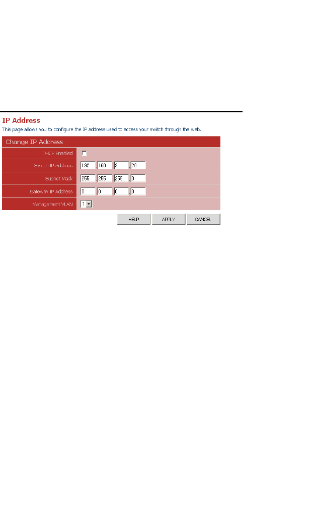 gateway, then click APPLY. Note that if you change the switch IP address, you must