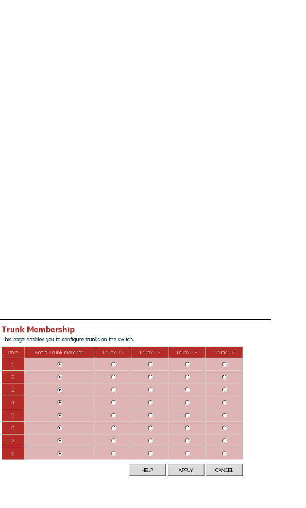 by the switch. To assign a port to a trunk, click on the radio button in the