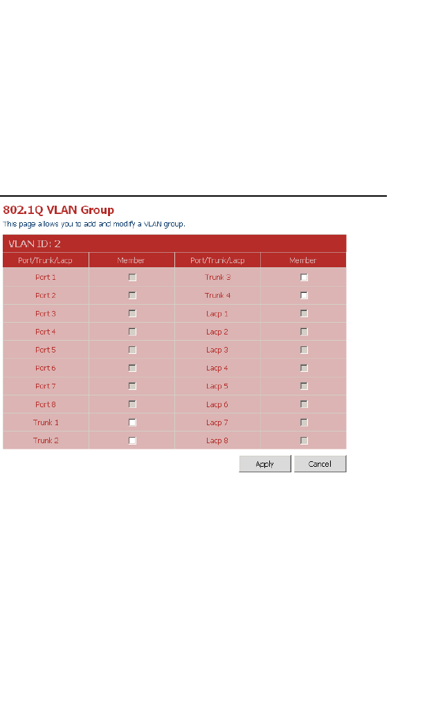 Web – After creating a new VLAN, the following screen displays. Assign the ports